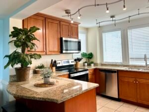 Home Comforts: Enjoy a full kitchen for family meals and the convenience of an in-unit washer and dryer.