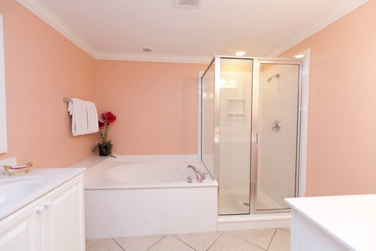 Place used towels in the bathtub (not on the floor)