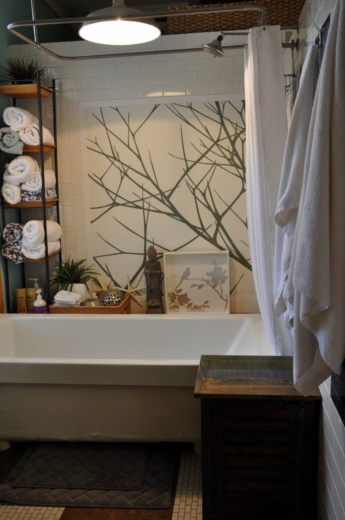 Place used towels in the bathtub